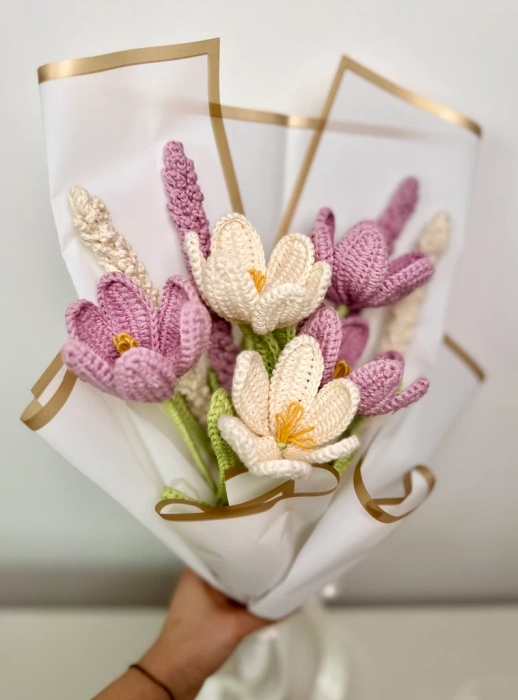 Each bloom is handmade with premium yarn, giving your flowers a realistic look that lasts far beyond fresh-cut stems. Perfect for gifting or adorning your home with grace.